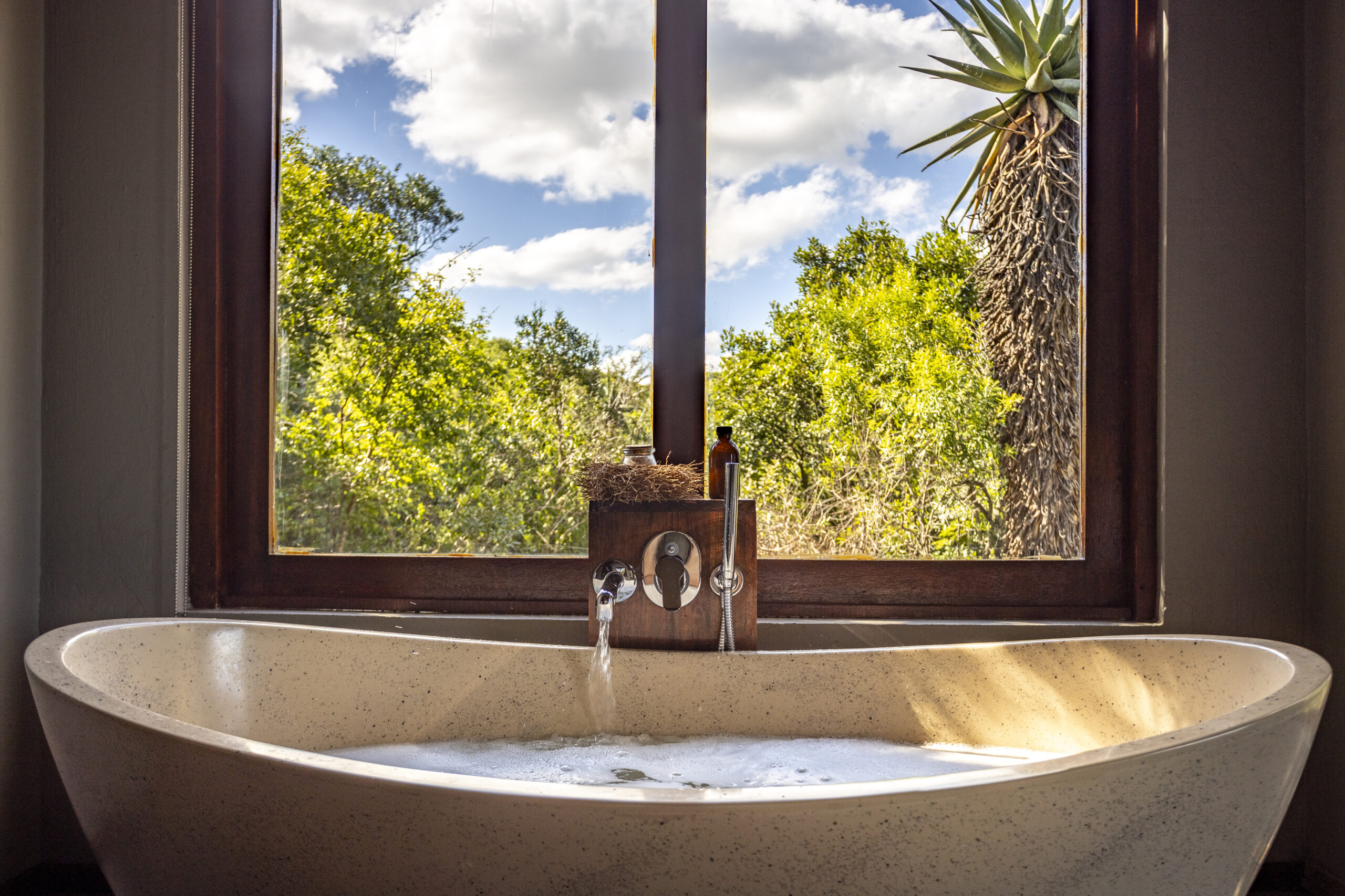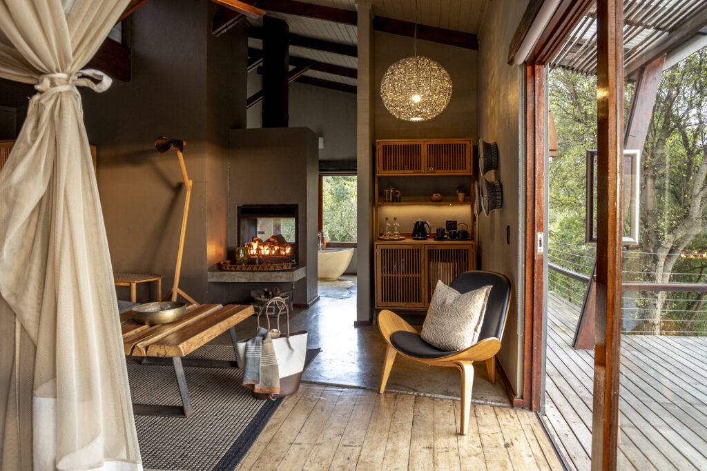 There are two Honeymoon Villas, which comprise a spacious, open plan bedroom and bathroom with bath, double vanity, separate shower and toilet. The open fireplace is perfect for cosying up on cool winter nights.